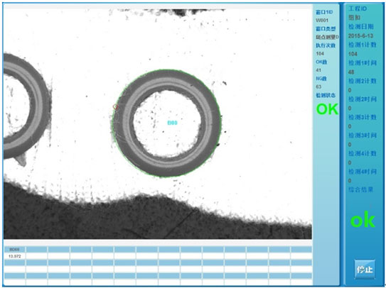 系統(tǒng)采用進(jìn)口高分辨率工業(yè)相機(jī),可以快速獲取圖像,通過(guò)圖像識(shí)別、分析和計(jì)算,實(shí)時(shí)偵測(cè)紐扣生產(chǎn)中是否出現(xiàn)不良品,并輸出相應(yīng)檢測(cè)信號(hào)提示,以便于對(duì)有缺陷的產(chǎn)品進(jìn)行處理。