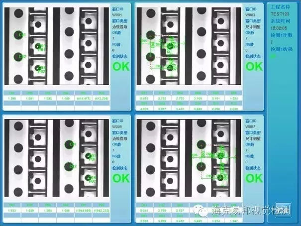 載帶缺陷檢測(cè)系統(tǒng),系統(tǒng)采用進(jìn)口工業(yè)相機(jī)快速獲取產(chǎn)品圖像,在一路相機(jī)下,實(shí)現(xiàn)兩路載帶各自定位、各自檢測(cè)。通過(guò)圖像識(shí)別、分析和計(jì)算,計(jì)算相應(yīng)位置尺寸,檢測(cè)到不良產(chǎn)品時(shí)按檢測(cè)時(shí)間命名保存不良圖像,并在顯示屏顯示當(dāng)前NG圖像,報(bào)警燈閃爍蜂鳴器輸出聲音信號(hào)。直到人工恢復(fù)報(bào)警,期間檢測(cè)不受影響。